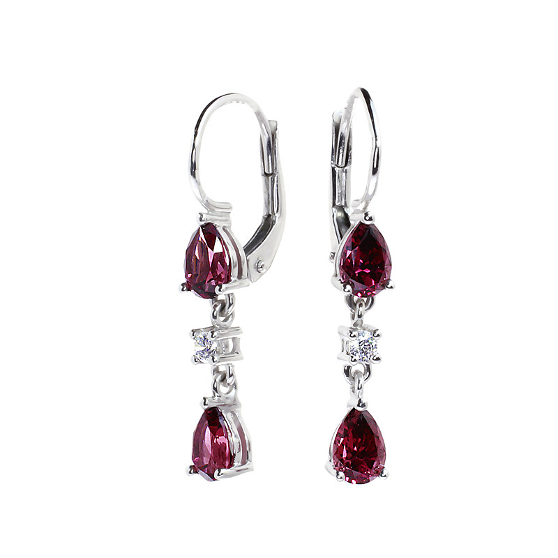Cassis – fehér arany fülbevaló rodolit gránáttal és gyémánttal