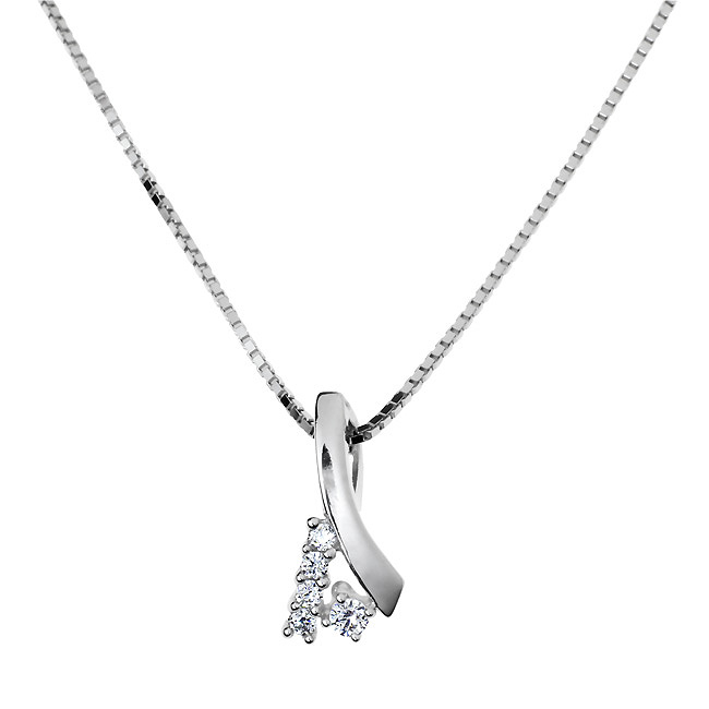 Az íves kialakítású fehér arany medál finom vonalai és a cirkónia kövek ragyogása tökéletes harmóniát teremtenek. Letisztult, klasszikus megjelenését a hozzá illő fülbevalóval kiegészítve még kifinomultabbá teheted.