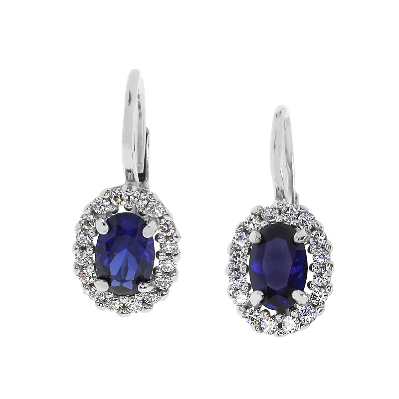 Ez a stílusos fehér arany fülbevaló a középpontjában elhelyezkedő ragyogó mélykék cirkóniával és a körülötte csillogó fehér cirkónia kövekkel tökéletes egyensúlyt teremt a romantika és az elegancia között. Ha szereted az ékszereket, amelyek egyszerre lágyak és figyelemfelkeltőek, ez a darab biztosan az egyik kedvenced lesz. A hozzá illő medállal szettként is tudod hordani.