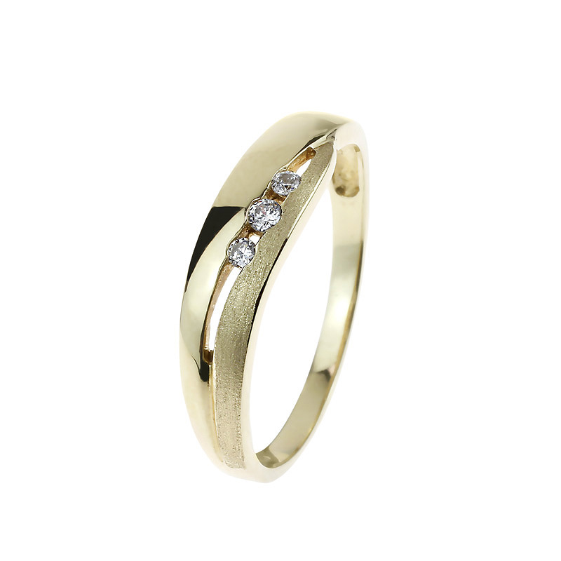 A sárga arany és a precízen megmunkált fényes-matt felület harmonikus egyensúlya teszi ezt a gyűrűt különlegessé. A cirkónia kövek finom csillogása elegáns, mégis visszafogott megjelenést biztosít.