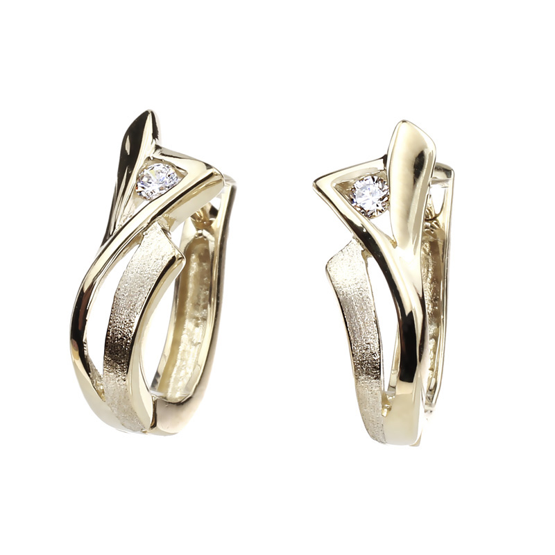A lendületes vonalvezetésű sárga arany forma finoman öleli körbe a ragyogó cirkónia követ ebben a fehér arany fülbevalóban. Stílusos és kifinomult választás, amely elegánsan egészíti ki a megjelenést.