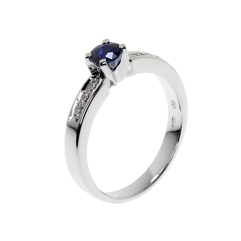 Marina – fehér arany eljegyzési gyűrű kék zafírral és gyémánttal