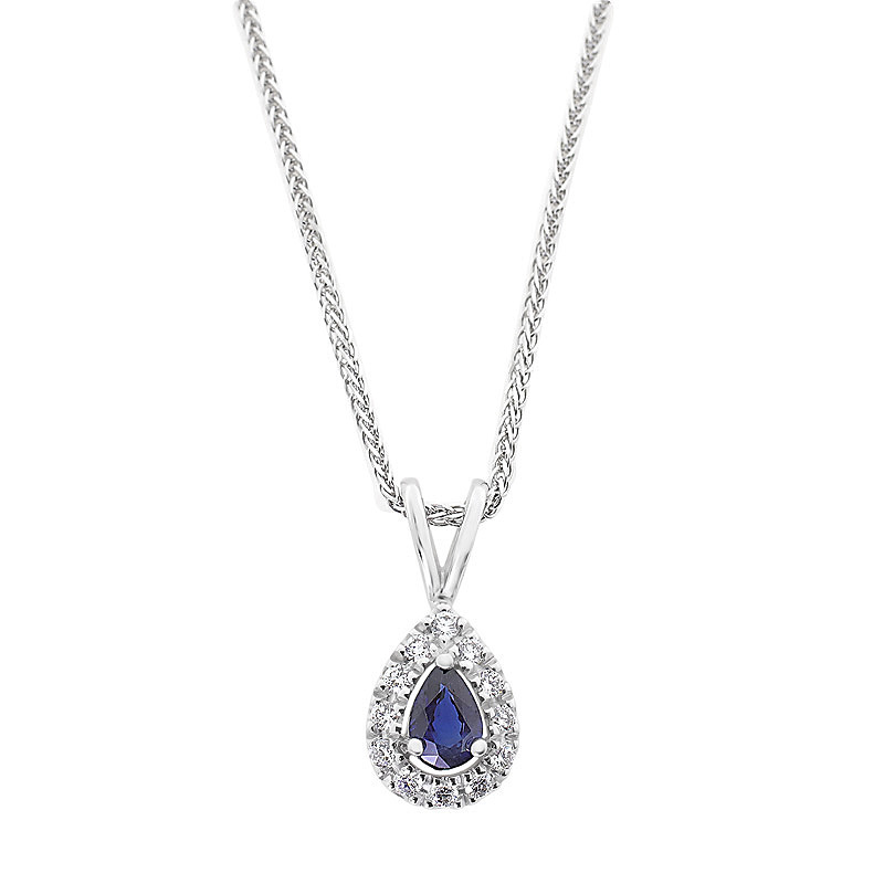Saphira – fehér arany medál kék zafírral és gyémánttal