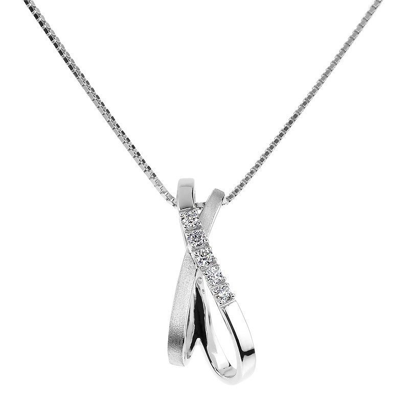 Ez a finoman kidolgozott fehér arany medál a lendületes vonalak és a csillogó cirkónia kövek ötvözetével hívja fel magára a figyelmet. A matt és fényes felületek találkozása elegáns kontrasztot alkot, kiemelve az ékszer egyedi formáját. A hozzá illő fülbevalóval kombinálva még harmonikusabb összhatást érhetsz el.